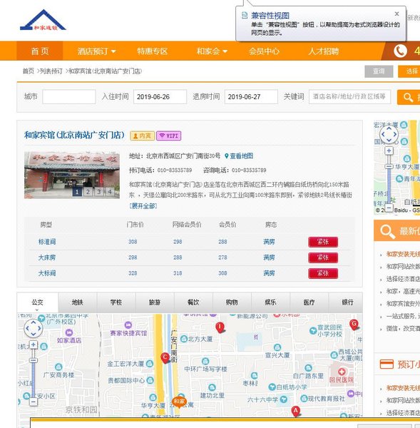 和家宾馆(北京广安门店)预订电话:+8620-86009099